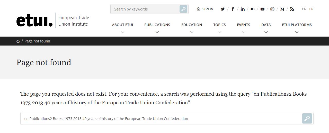 Daar kun je, via de website van het ‘Vrij Syndicaat voor het Openbaar Ambt’ , de geschiedenis van de eerste 40 jaar bestellen[2]. Althans, dat dacht ik…want niet alleen loopt de internetlink naar ’40 jaar geschiedenis van het Europees Vakverbond’ dood, het betreffende boek blijkt alleen in het Frans en Engels te bestaan.