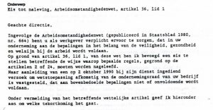 Zo’n ‘Verzoek tot Wetstoepassing’ kent een aantal fases. Na het verzoek van de OR aan de Arbeidsinspectie en na het verstrekken van informatie door de werkgever volgt een hoorzitting door de Arbeidsinspectie. Die vindt plaats op 18 december 1990, in de vergaderzaal van de OR. Directie, deskundigen, de VGW-commissie samen met de OR-voorzitter, hebben geen bezwaar tegen een gezamenlijke zitting. Het biedt de mogelijkheid om ter plekke elkaars woorden te horen, wat latere misverstanden (of erger) voorkomt. Bovendien hanteert de OR het onderhandelingscredo ‘hard op de inhoud,zacht op de relatie’. Dat geldt ook – ere wie ere toekomt – voor de betrokken directeur. Om standvastig en stevig te zijn heb je geen keiharde ruzie nodig…