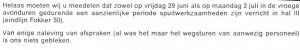 Uiteindelijk formuleert de Arbeidsinspectie op 17 mei 1991 een ‘Eis tot naleving’. De inhoud is, kort samengevat, niet meer of minder dan wat de OR al die jaren had gevraagd: zo min mogelijk verfspuiten in de productiehal, en als het niet anders kan moeten alle andere werkzaamheden gestaakt worden. Bovendien, en dat is een lastige voor het bedrijf, mag er in dat geval alleen op vrijdagavond na 20u40 in gespoten worden. Fokker gaat in beroep, maar trekt dat in, wanneer in overleg met de OR een iets aangepaste, ook voor de Arbeidsinspectie acceptabele oplossing is gevonden.