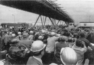 Er vielen klappen en er heerste ongeloof, ontzetting en woede over deze geweldsuiting van de directie. Er ontstond een gevaarlijke situatie. Bij twee andere poorten was de situatie ongeveer hetzelfde. Er dreigde een geweldssituatie te ontstaan. Onder deze dwang kon de Industriebond niet anders dan de stakers te laten verzamelen in het actiecentrum.