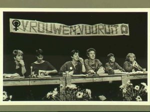 “Even terug in de tijd. Daar ontkom je niet aan bij het IISG. In 1983 werkte ik bij het FNV- vrouwensecretariaat en trok ik vaak ‘s avonds door het land om met groepen vrouwen over hun situatie te praten. In Breda vertelden vrouwen dat er bij de Edah eerst 80% vast en 20% oproepkracht waren, maar dat in een jaar tijd die verhouding was omgekeerd. In diezelfde week hoorde ik nog twee vergelijkbare verhalen. Reden onze FNV jurist te vragen wat er juridisch geregeld was voor oproepkrachten. Het antwoord was ‘Niets’. Mijn intuïtie vertelde mij dat dit een groot probleem zou kunnen worden. De volgende stap was, inventariseren bij vrouwensecretarissen van de verschillende bonden. Toen ook zij voorbeelden uit hun sectoren kenden besloten we de werkgroep Marflex op te richten. Voluit: marginalisering en flexibilisering van arbeid. Met deze groep vrouwen hebben we feiten verzameld en plannen gemaakt het probleem aan te pakken. Te beginnen met de themadag Vrouwenarbeid in de marge, in 1984. Daar kwamen 120 vrouwen op af, winkelpersoneel, champignonpluksters, onderwijzers, verzorgenden uit verpleeghuizen.”