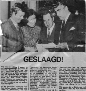 Uitreiking CKS-diploma aan Freek Thomasson, ‘bezoldigd medewerker’ van Mercurius, in 1968, links op de foto