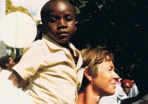 … Mieke had een kleine Zimbabwaan op haar schouder genomen om hem beter te laten kijken naar president Mugabe…