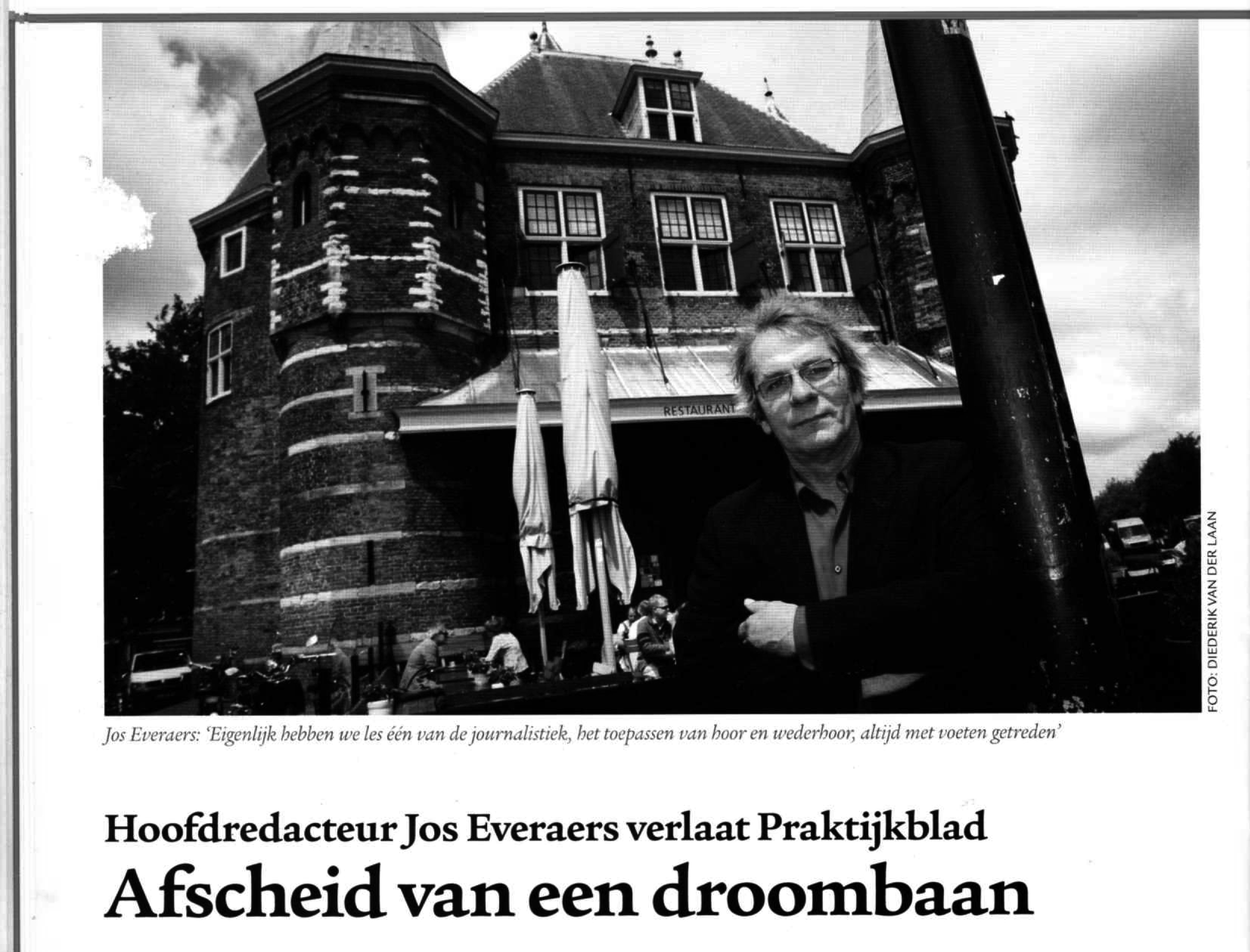 Bij de zoveelste reorganisatie bij Reed Elsevier, waarbij in 2011 in zijn uitgeefgroep alle hoofdredacteuren werden ontslagen, werd ook Jos aan de kant gezet. Hij was tegen die tijd 59, hoefde vanaf dat jaar niet meer betaald te werken en is sindsdien met pensioen. (5. foto afscheidsinterview in Praktijkblad)