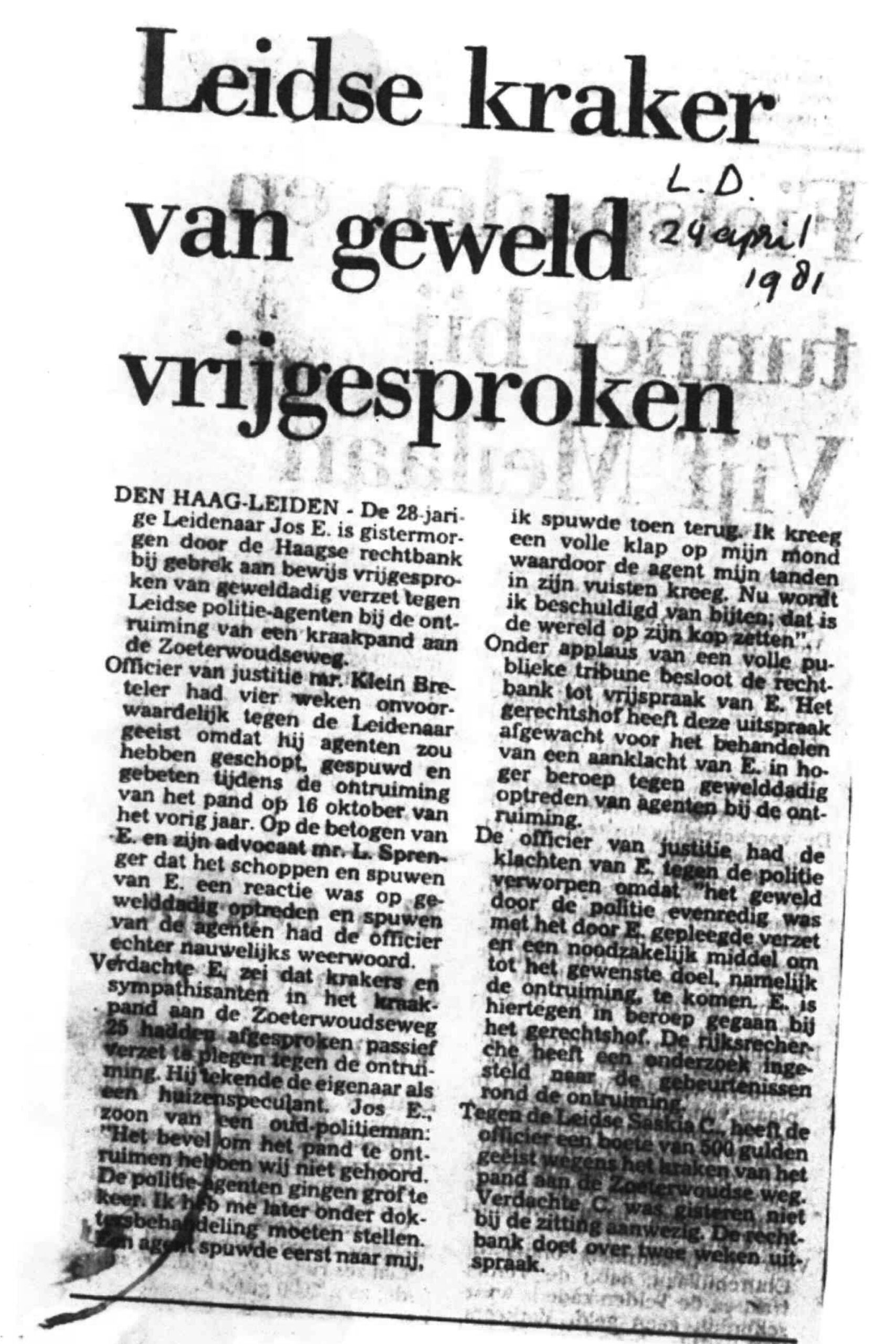 In deze periode, 1980 tot 1983, was Jos actief in de Leidse kraakbond en was hij druk met de oprichting en uitgave van de linkse Stadskrant Leiden die om de drie weken verscheen en volgeschreven werd door vrijwilligers. Het was een turbulente tijd, waarin Jos bijvoorbeeld beschuldigd werd van het mishandelen van agenten bij een gewelddadige ontruiming van een gekraakt pand. De officier van Justitie eiste in de daarop volgende rechtszaak een maand onvoorwaardelijke gevangenisstraf. Jos kon zich met verve verdedigen en kon de rechters duidelijk maken dat niet hij de politie had mishandeld, maar de politie hem. De rechters spraken hem vrij. Dit alles vormde geen belemmering voor zijn hbo-opleiding journalistiek die hij na twee jaar afsloot met het diploma.
