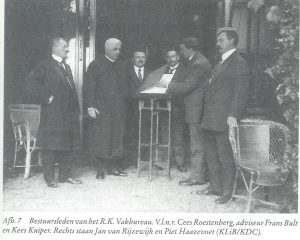 ‘Mgr’ Antoine van Wijnbergen, midden, voorzitter van de Algemene Bond van R.K. Kiesverenigingen