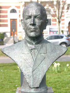 Bronzen borstbeeld van Marten Mees aan de kop van de Veerhaven (Westplein) in Rotterdam. Gemaakt door Robert Jan Donker. Foto: Dik Nas.