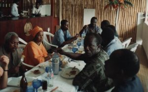 Die avond zaten we met het gehele gezelschap van een man – en vrouw – of veertig voor het televisietoestel in de eetzaal van het hotel. We waren in afwachting van de toespraak van de Franse President Chirac die integraal en direct zou worden uitgezonden. Veertig Afrikanen uit zo’n 10 landen die alleen via het Frans met elkaar konden communiceren. De taal van de vroegere overheerser. De taal van het land waar zovelen van hun familieleden voor hadden gevochten. In Europa maar ook in verre koloniën als Vietnam.