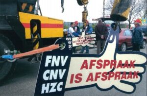 In de afgelopen jaren zijn bij het Internationaal Instituut voor Sociale Geschiedenis (IISG) meer dan 100.000, veelal zwart-wit, foto’s, dia’s en andere beeld- en geluidsdragers, afkomstig van de FNV bekeken, geselecteerd, beschreven en vervolgens gerubriceerd. De grote man achter dit project is Kier Schuringa. Hij nam het initiatief voor een ambitieus plan: de omvangrijke fotocollecties van de FNV Centrale en bonden te schonen (door onder meer te ontdubbelen), te beschrijven en ze daarmee voor een breed publiek toegankelijk te maken. Met grote volharding heeft Kier, soms geholpen door enkele enthousiaste vrijwilligers, deze grote klus nu tot een goed einde gebracht. Op deze website en in de Nieuwsbrief van de VHV besteden we in een aantal afleveringen aandacht aan de resultaten van deze grote ‘in-beeld-breng’- klus van de afgelopen jaren.