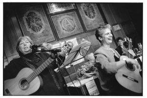Op de foto van Liesbeth Sluiter staat links de indertijd bekende en inmiddels overleden Cobi Schreijer (1922-2005), troubadour en fervent vertolkster van liederen met een feministische inslag. Ze wordt begeleid (op de foto rechts) door Lucia van Westerlaak, in 1997 hoofd van de afdeling doelgroepen bij ABVAKABO, later dagelijks bestuurder en voorzitter van FNV KIEM; nog weer later was en is ze voor de FNV actief op het terrein van Internationaal Maatschappelijk Verantwoord Ondernemen. Schrijfster Corrie van Eijl staat helemaal rechts achter.