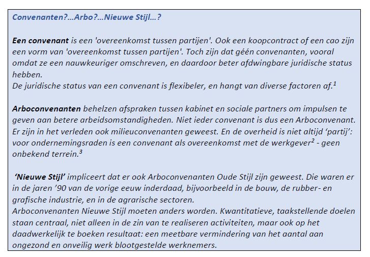 Arboconvenanten Nieuwe Stijl leunen op de kabinetsgedachte dat ze een geschikt middel zijn om de verantwoordelijkheid voor goede arbeidsomstandigheden sterker bij sociale partners te leggen. Dat is in lijn met het sinds de jaren ’80 dominante dereguleringsstreven van de overheid.