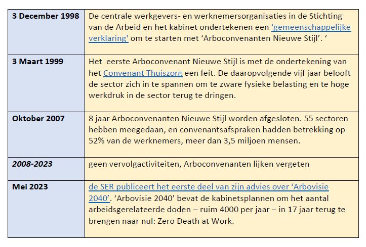 Tijdlijn Arboconvenanten Nieuwe Stijl