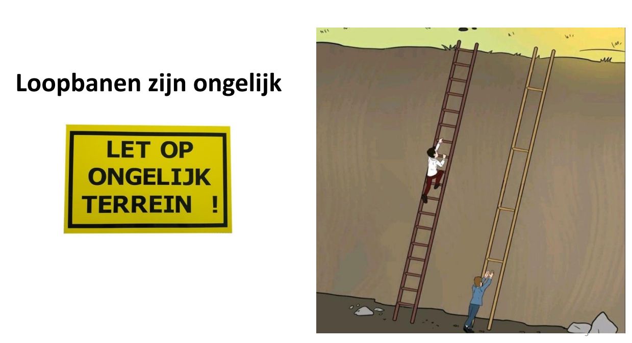 Karlien Haak, actief voor het aan het CNV gelieerde ‘James’ en voor het gezamenlijke FNV/CNV-initiatief de VAKbeweging (met drie hoofdletters), houdt een boeiende uiteenzetting over loopbaan, scholing en leven lang ontwikkelen en de rol van de vakbeweging daarbij. Bij ‘James’ kun je terecht met vragen over je loopbaan en persoonlijke ontwikkeling. De naam James is een speelse verwijzing naar James Bond. Loopbanen van mensen zijn ongelijk, sociaal én beperkt maakbaar. Het begint al met de kansen die je krijgt vanuit het milieu waar je vandaan komt. Het beeld van de twee verschillende ladders is veelzeggend. Medewerkers kunnen door de vakbond worden bijgestaan in hun loopbaanontwikkeling. FNV en CNV hebben hiervoor de handen in elkaar geslagen. Het begrip “brede vakbeweging” wordt hierdoor inhoud gegeven. Ambities van medewerkers zijn natuurlijk in de eerste plaats persoonlijk, maar mede vormgeving daarvan hoeft niet alleen te worden overgelaten aan personeelszaken/HRM. Het komt me voor dat de vakbeweging met inzet op dit terrein zichtbaarder kan worden op de werkvloer en veel voor werknemers kan betekenen. Inmiddels heeft de vakbeweging hierop al een positie bereikt met 16.500 deelnemers in 35 arbeidsmarktregio’s.